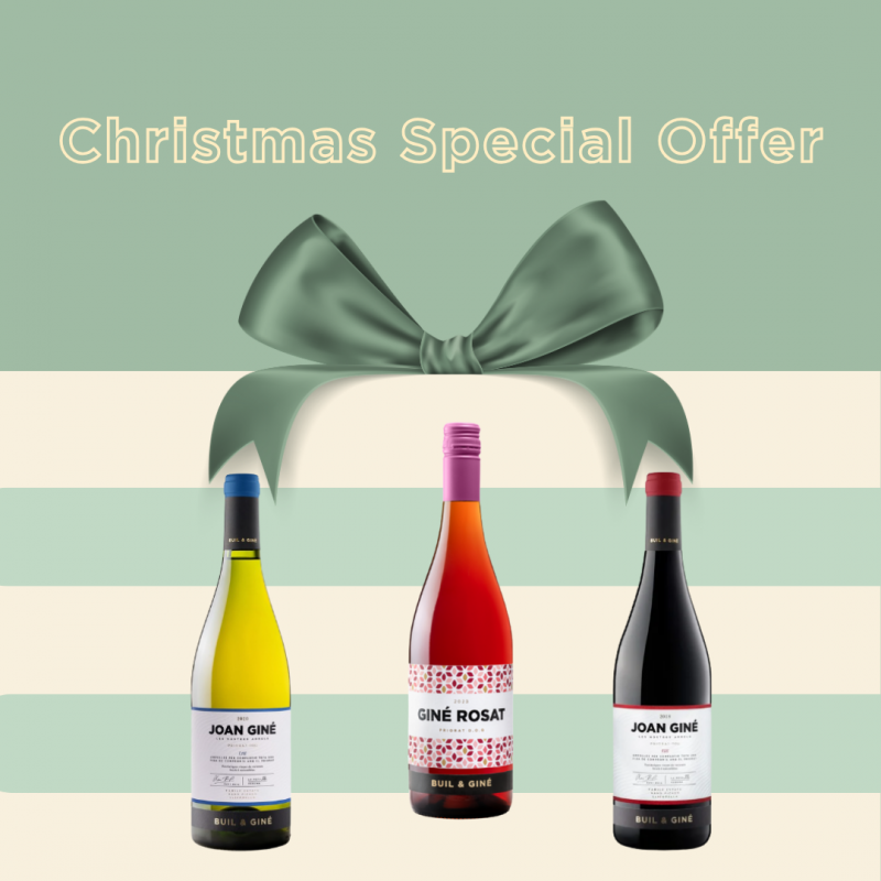 Celebrem aquest moment únic amb aquest lot de 3 vins, tres colors : JOAN GINÉ BLANC 2020, GINÉ ROSAT 2023 i JOAN GINÉ 2019.
