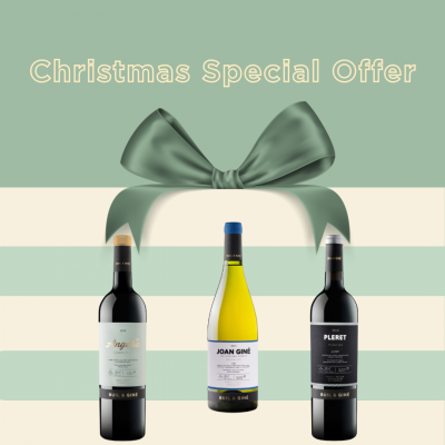 Celebrem aquest moment únic amb aquest lot de 3 vins, tres textures: JOAN GINÉ BLANC 2020, ANGELÍA 2019 i PLERET 2015.